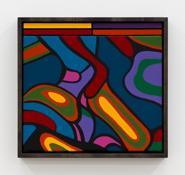 Acrylic on canvas with painted panels, 11 × 12 in.