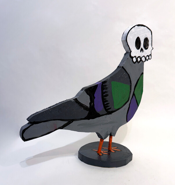 A men's cloth (hinggi), consisting of two weaves sewn together. On the cloth are skull trees and birds. The central band shows the 'patola ratu' motif, a motif inspired by the pato...
