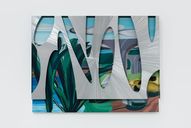 This long handscroll comprises a four-character frontispiece, a landscape painted in ink and color on silk, and a poem written in ink on paper in running script ("xingshu"). Both t...