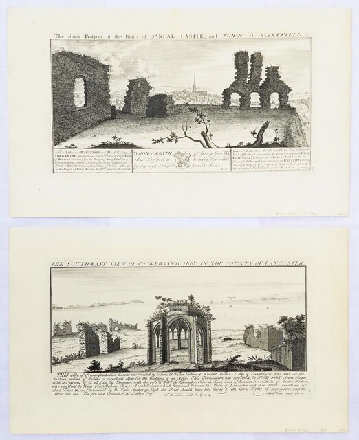 Title: Samuel Buck, "Cockersand Abbey" and "Sandal Castle" from "Buck's Antiquities" (1726-1739)