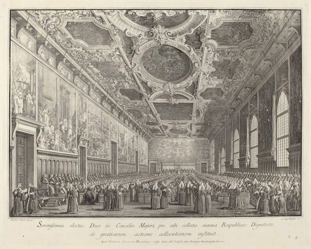 Title: Giovanni Battista Brustolon after Canaletto, The Doge Returns Thanks in the Sala del Consiglio Maggior (1763/1766)
