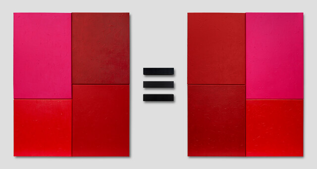 Acrilico sobre tela, esmalte sobre madera, 90 × 200 cm.