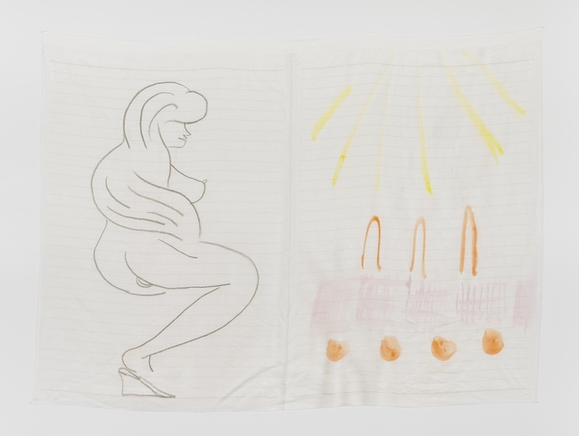 Paint and airbrush on fabric, 98 1/2 × 63 in...