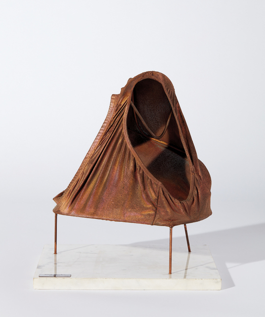 Copper armature, spray painted textile, and marble base, 36.