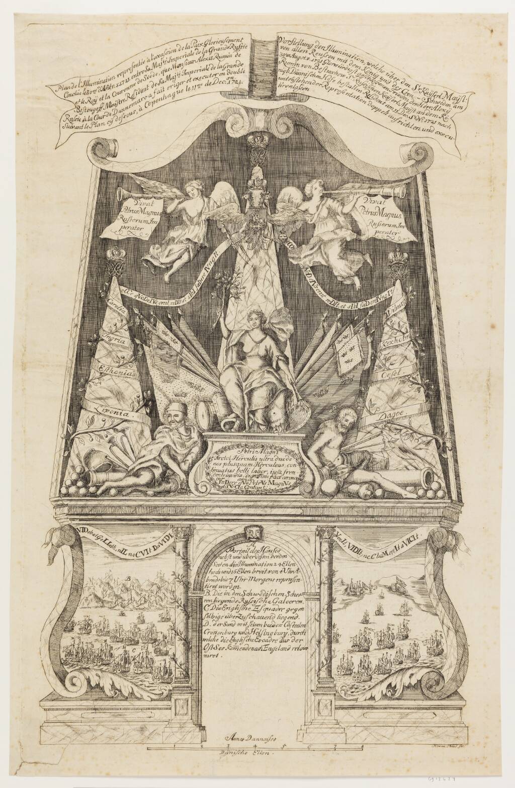 Title: Illuminationsforestilling, foranstaltet af den russiske gesandt i København i anledning af den russiske Kejsers og svenske Konges besøg i København d. 11. december 1721