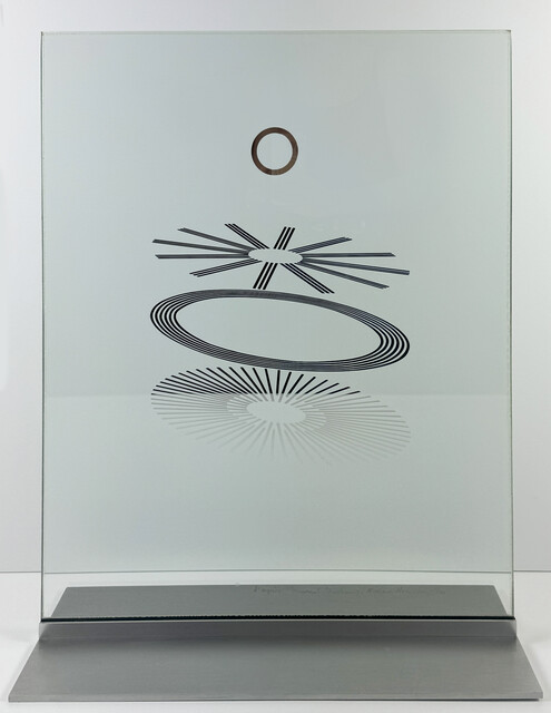 Screenprint, silver mirror in laminated glass, aluminum plinth, 25 3/5 × 20 × 8 in.