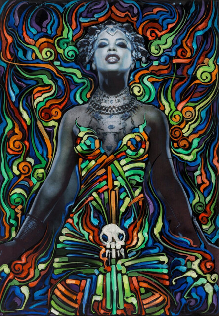 Acrylic on digital pigment print, 61 1/4 × 42 1/2 in...