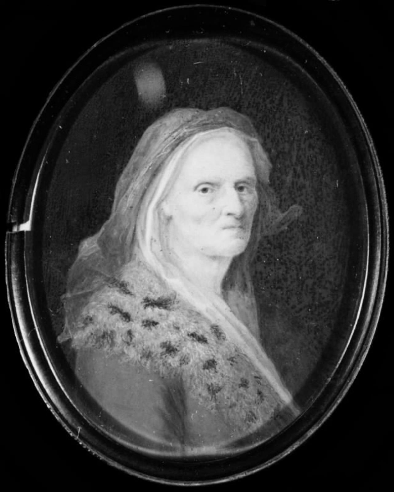 DockaInventering Sesam 1996-1999: H 51 (cm) Docka, damdocka (a), med kläder (b-j), huvud och sköld med modellerad byst av porslin, halvarmar av massa och kropp i stoppat tyg. Målade ansiktsdrag, rosa sluten mun, blå ögon, rödmarkerade ögonglober och brunt