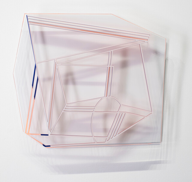 Solid acrylic slab, incised drawing, pigmented epoxy, 17 × 16 × 3 in.