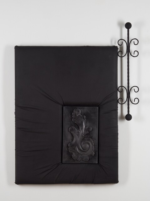Textile, silicone, button, paint, upholstery, wood, 75 × 70 cm...
