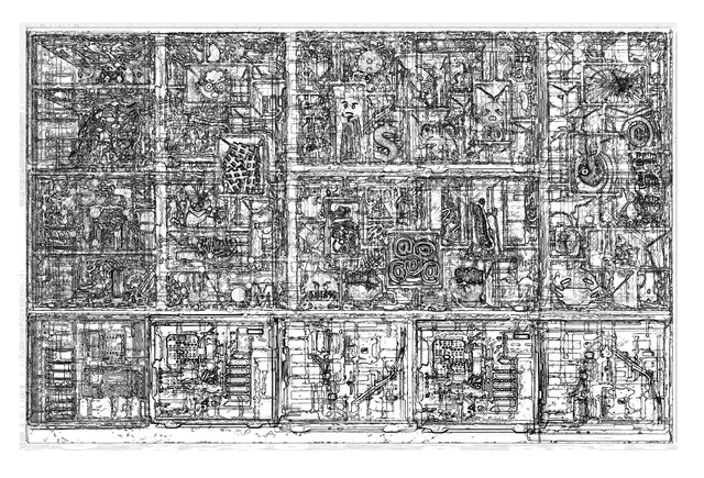 Ink drawing on archival paper, 26 × 17 1/2 in.