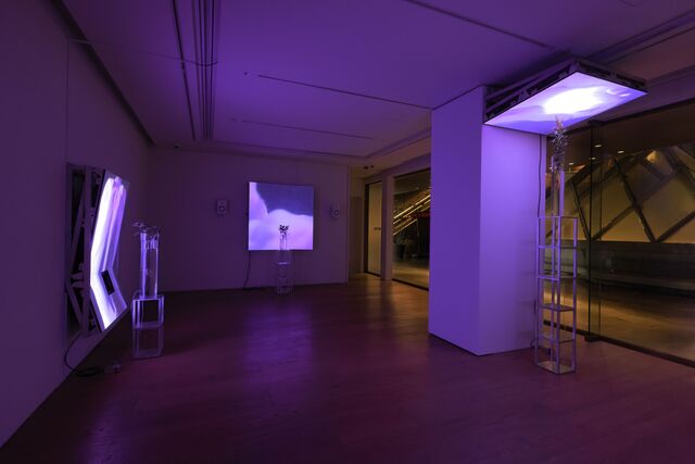 LED panels, aluminium structures, brightsign media player, glass vase, aluminium podium, 150 × 100 × 80 cm...