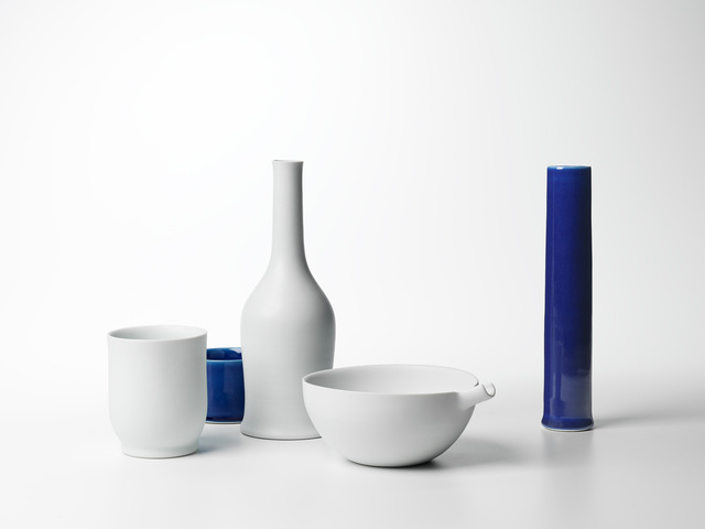 Porcelain, matt white, satin, and cobalt glaze, 24.