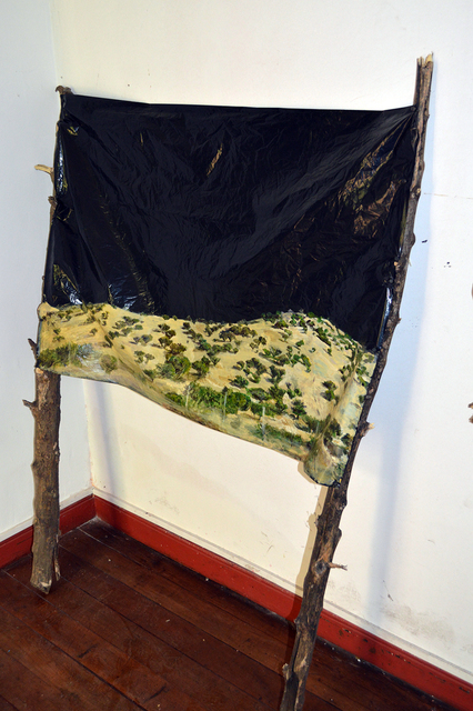 Garbage bags and acrylic paint, 160 × 110 cm.