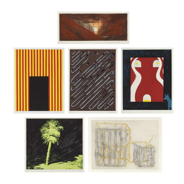 Billy Al Bengston, Peter Alexander, Laddie John Dill, Robert Craig Kauffman, Ed Moses, and Eric Orr, Untitled; Brooks; Untitled No. 1; CK-1, from the In Barcelona portfolio, Untitled, and Crazy Wisdom (six works) (1988-1989)