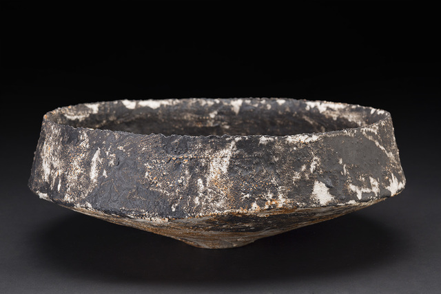 The walls of this large yankou wan, or funnel-shaped, tea bowl expand from the small, circular foot, beginning their steep ascent to the lightly indented, vertical lip at an angle ...