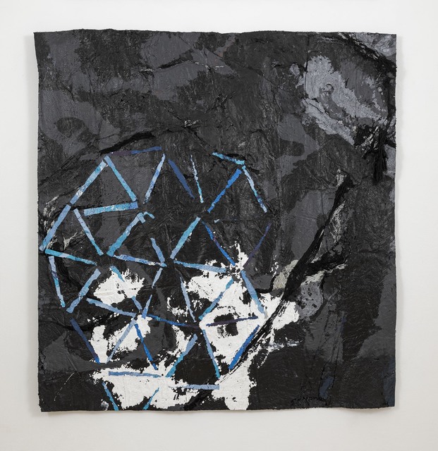 Acrylic on woven hammock, mounted to panel, 79 × 69 × 1 1/2 in...
