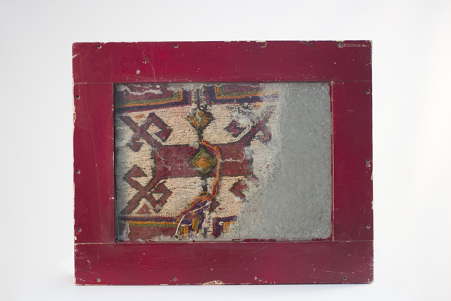 Bonad, painting on tapestry. Imagine two men, a candy and a cupboard.