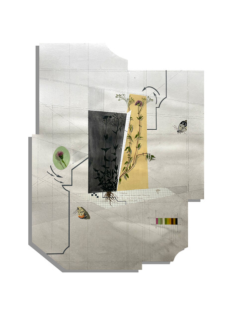 Acrylic on paper, Natural found incest and grass, 32 × 46 in...