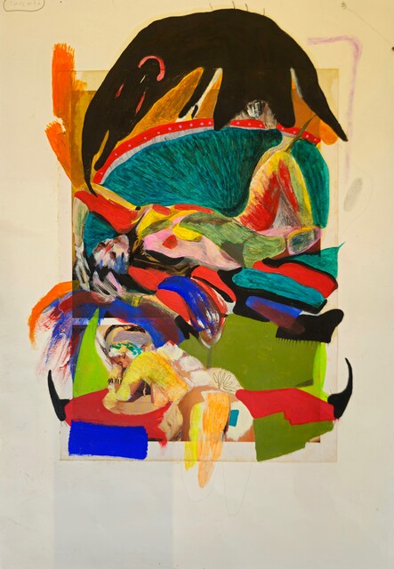 Mixed media on paper, 64 × 45 cm...