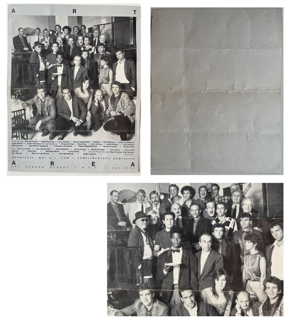 Keith Haring, Jean-Michel Basquiat, Andy Warhol, Kenny Scharf, Robert Mapplethorpe, Alex Katz, Marisol, Peter Max, Barbara Kruger, Jenny Holzer, Sol LeWitt, Tom Wesselmann, David Hockney, Michael Halsband, and Julian Schnabel, "Complimentary Admission/Inv