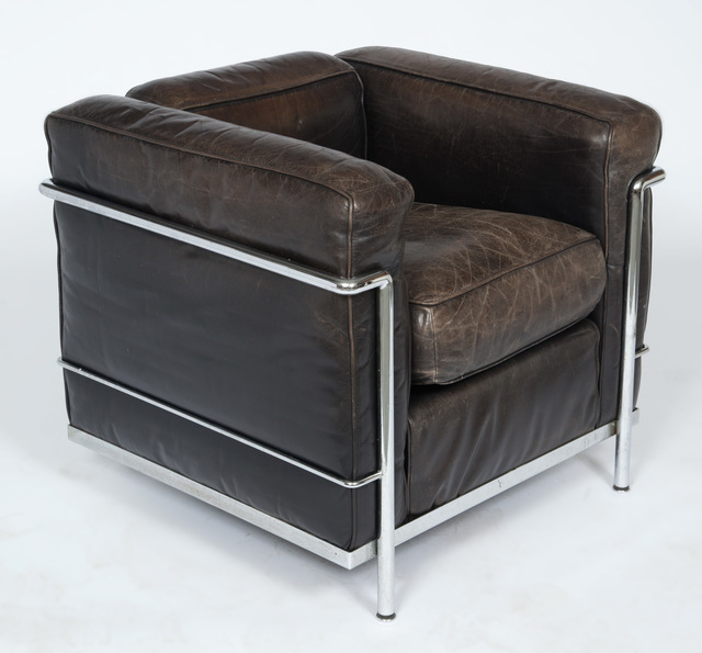 Title: Le Corbusier, Pierre Jeanneret, and Charlotte Perriand, Three Le Corbusier, Pierre Jeanneret, and Charlotte Perriand Leather Upholstered Chromed Metal LC2 Petit Modele Armchairs