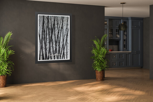 Dale Chihuly, Dale Chihuly Signed Original Painting 42” Black and White Reeds (2000-2020)