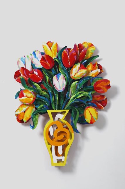 Hand-painted metal wall sculpture, 100 × 78 cm.