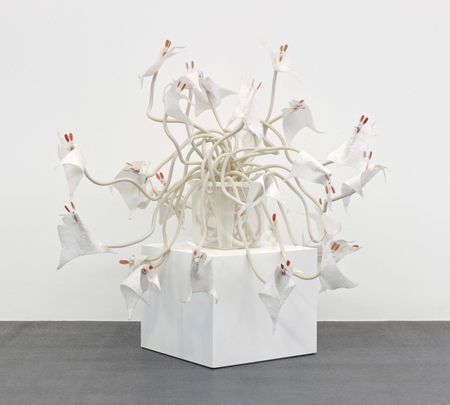 PVC-box, PVC-pipe, fleece, pegs, tampons, cable ties, 130 × 130 × 130 cm.
