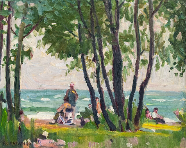 Title: Peter Clapham Sheppard, UNDER THE POPLARS, CHERRY BEACH (ca. 1939/40)