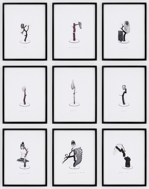 Set of 9 collages with ink on paper, 14 × 10 7/10 in...