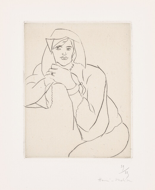 Henri Matisse, Jeune femme les mains jointes sur le dossier d'un meuble (Young Woman with Folded Hands on the Back of a Piece of Furniture) (D. 162) (1929)