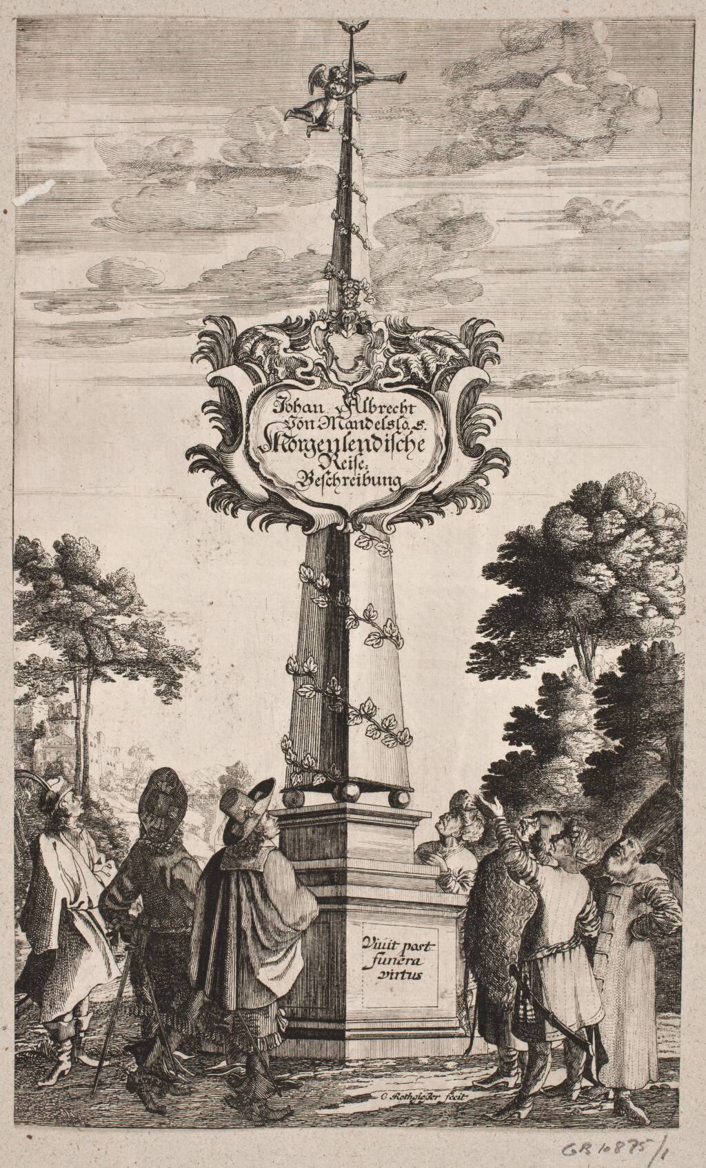 Title: Titelblad til Johann Albrecht Mandelslo, ”Morgenländische Reisebeschreibung […], Schleswig 1668