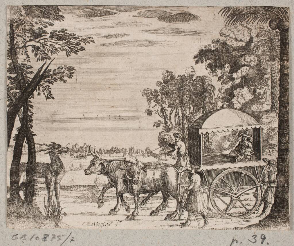 Title: Oksekærre med en europæisk rejsende