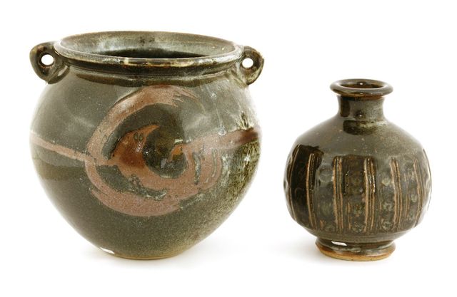 Title: John Leach, a glazed Muchelney Pottery cauldron jar, (1990)