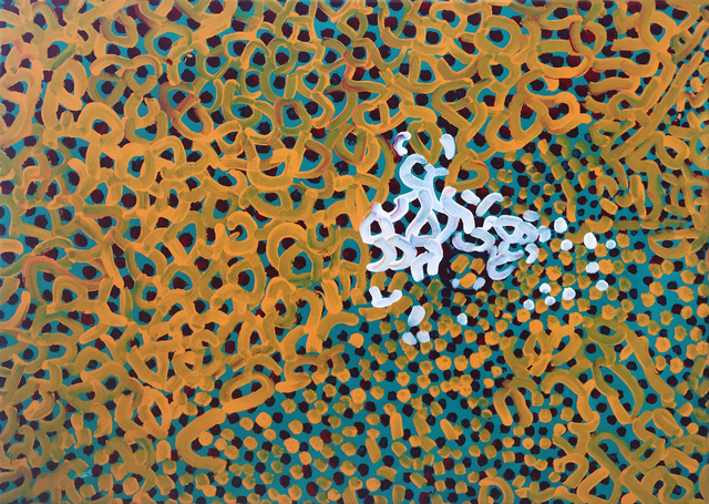 Lorna had been painting since 1986 and began painting with a small group of women who collectively produced the first women‘s paintings for the Wanayaka Art Centre in Lajamanu.