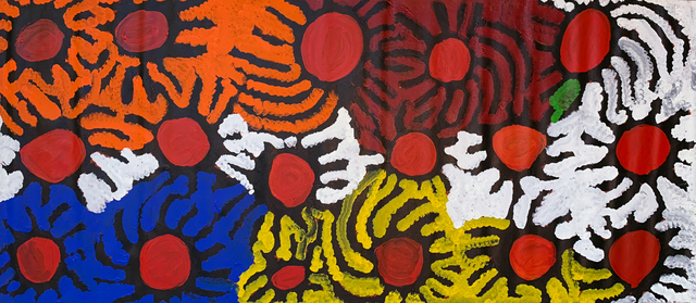 Lorna had been painting since 1986 and began painting with a small group of women who collectively produced the first women‘s paintings for the Wanayaka Art Centre in Lajamanu.