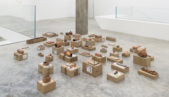 Materials, tools and objects galvanised with copper, 200 × 200 × 20 cm.