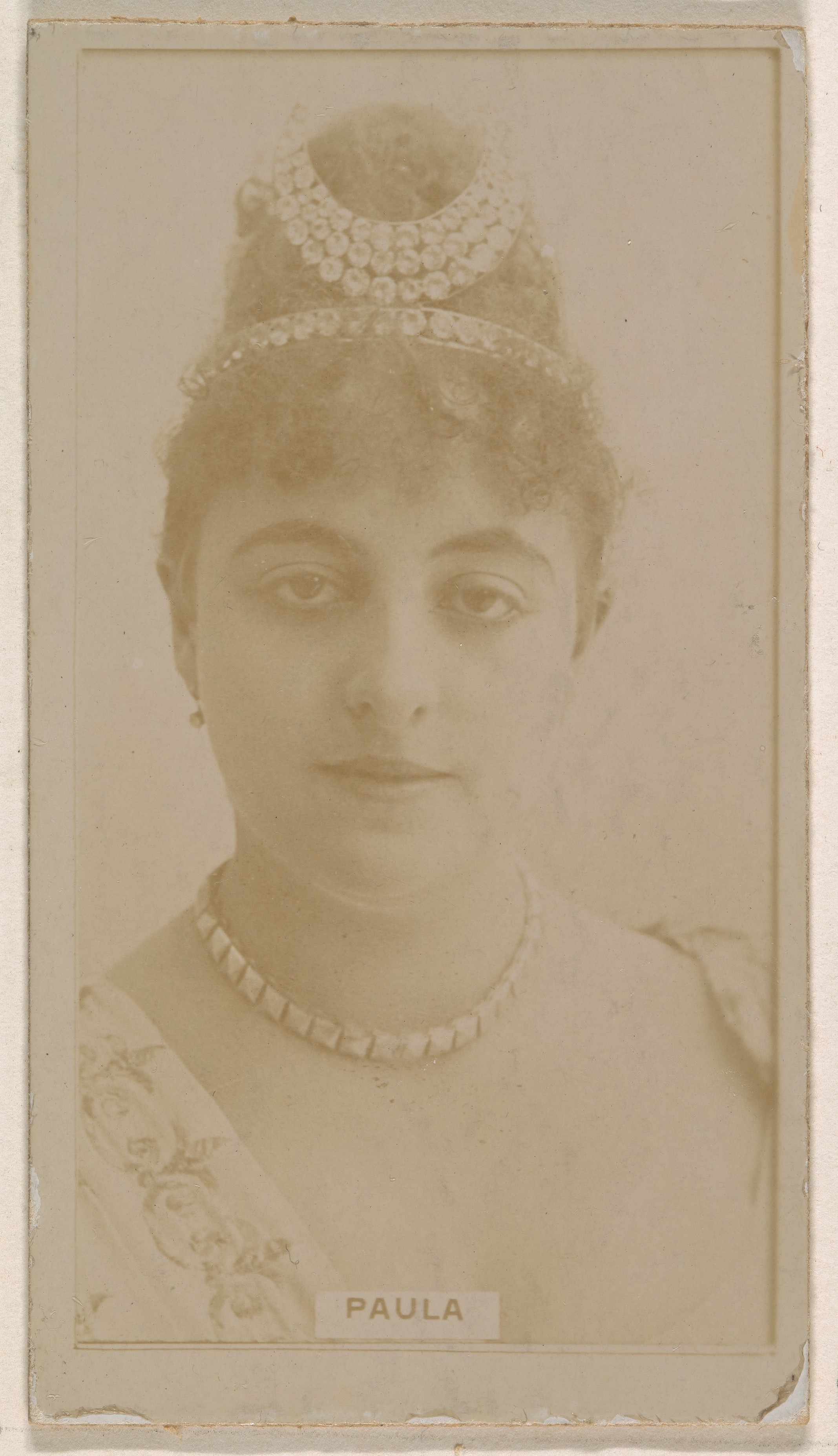 Miss Paula, from the Actresses series (N245) issued by Kinney Brothers to promote Sweet Caporal Cigarettes