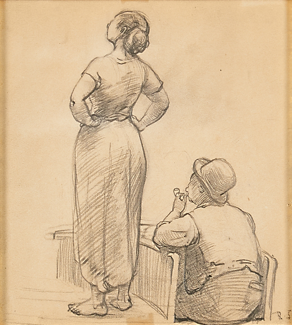 Title: Robert Spencer, Untitled (Study of a Woman and Canal Boatman)