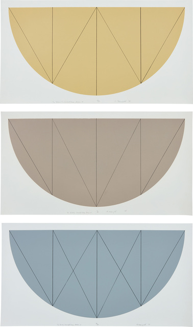 Robert Mangold (b. 1937), 1/2 Manila Curved Area Series W; 1/2 Brown Curved Area Series V; and 1/2 Gray Curved Area Series X (S. & S. 1968.01-1968.03, S. 1-3) (1968)