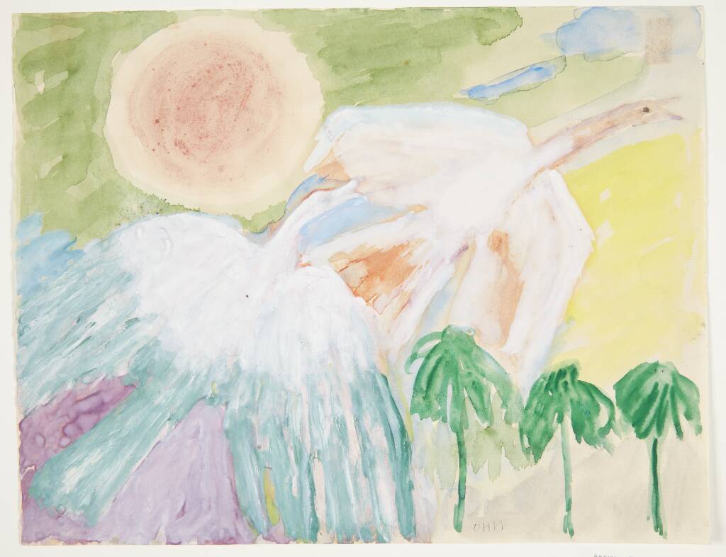 pin span frame. The back of the span frame and the cloth covered in yellow paper. Behind the canvas four lac...