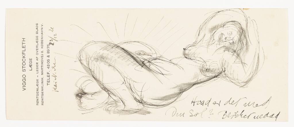 Nøgen pige siddende tilbagelænet på tangenterne af et klaver