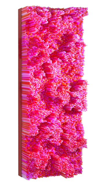 Coloured drinking straws on panel, 100 × 100 × 50 cm...