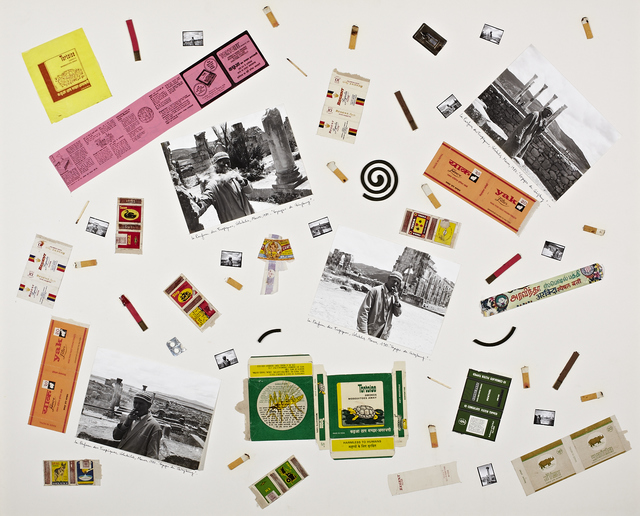 Cigarettes, cigarette buts, matchboxes, matches, gelatin silver print and ink on cardboard, 40 × 48 1/4 in