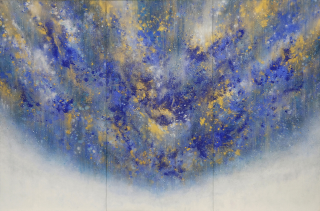Japanese pigments on Japanese paper,mounted on 3 individual panels, 182 × 273 cm.