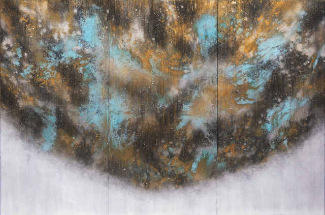 Japanese pigments on Japanese paper,mounted on 3 individual panels, 182 × 273 cm...