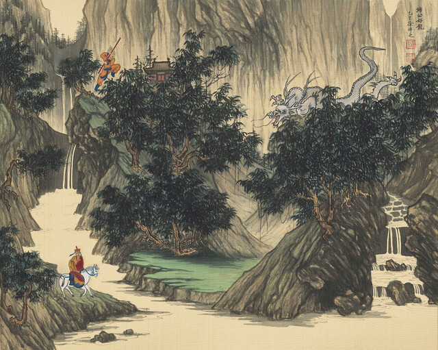 Ink and colour on silk, 40 × 50 cm.