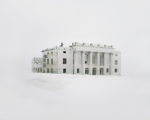 Title: Danila Tkachenko, Former mining town which has been closed and made a bombing trial field. The building on the photo shows the cultural center, one of the objects for bombing (2014)