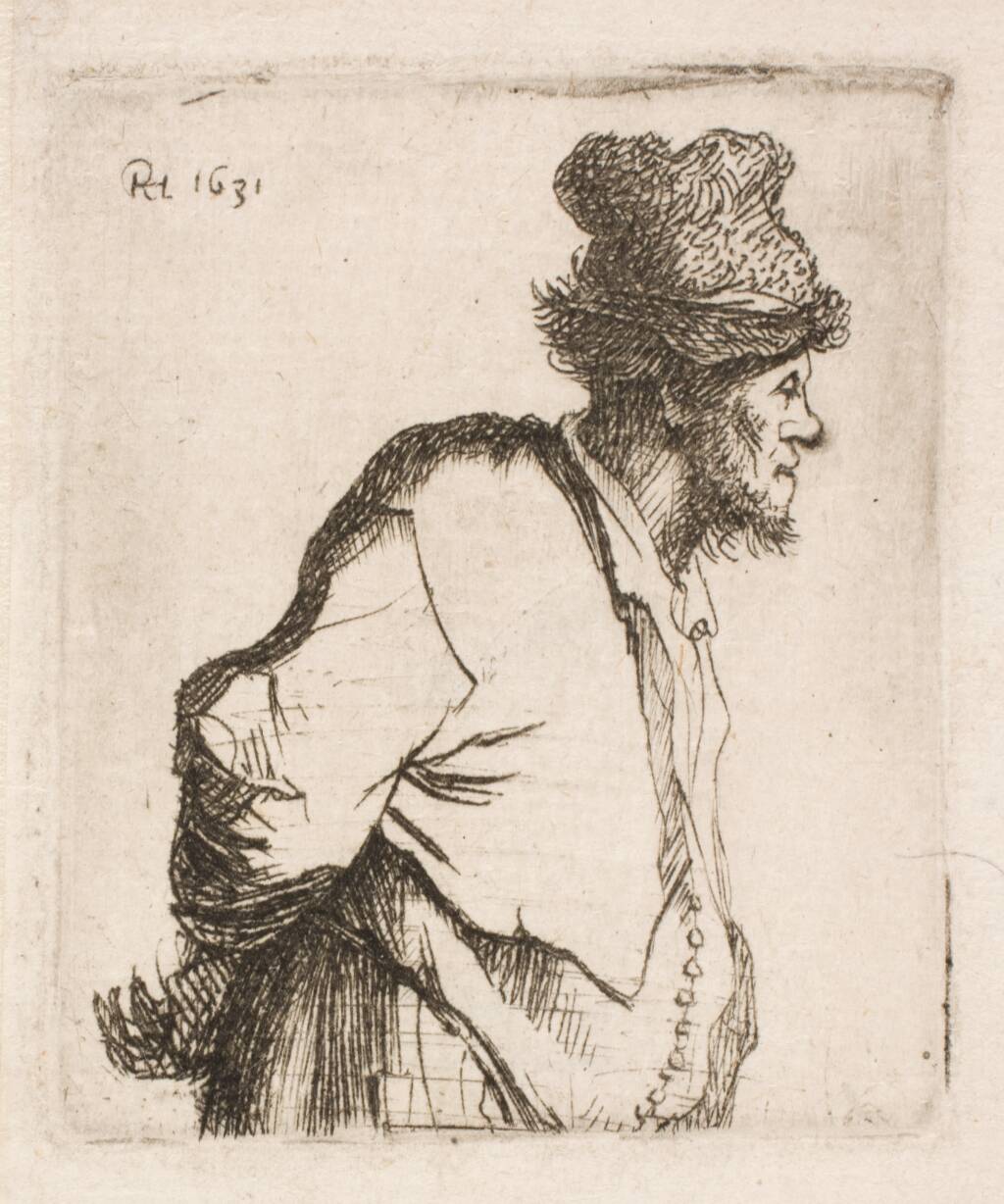 Kunstnerens søster Christiane, siddende ved sit ved sit sybord, med ryggen til. En siddende yngre mand, helfigur, en face